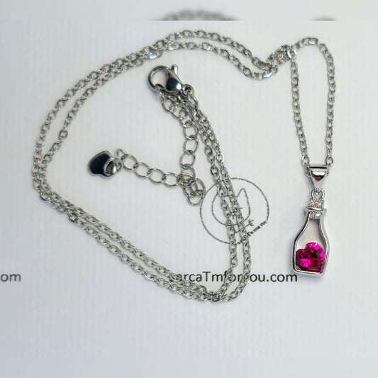 Ketting met wijnfles en zirkonium hartje