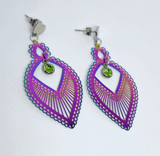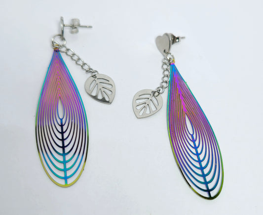 Multikleur rvs oorbellen 'Druppel' met blaadje