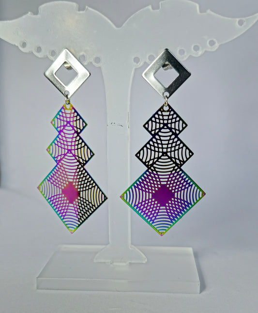 Multikleur rvs oorbellen 'vierkant'