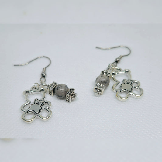 Oorbellen Beer met grijs