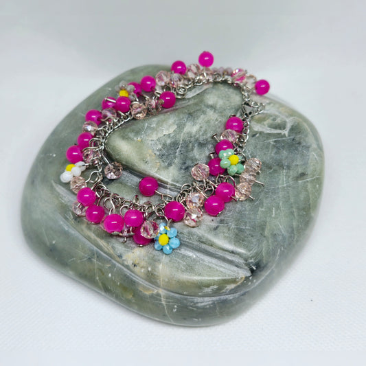 Roze cluster armbandje met bloemen
