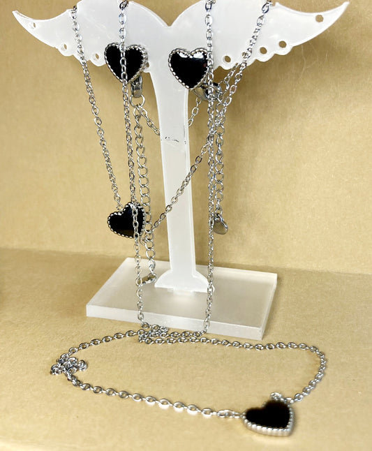 Set RVS - Zwart hart armband, ketting, oorbellen